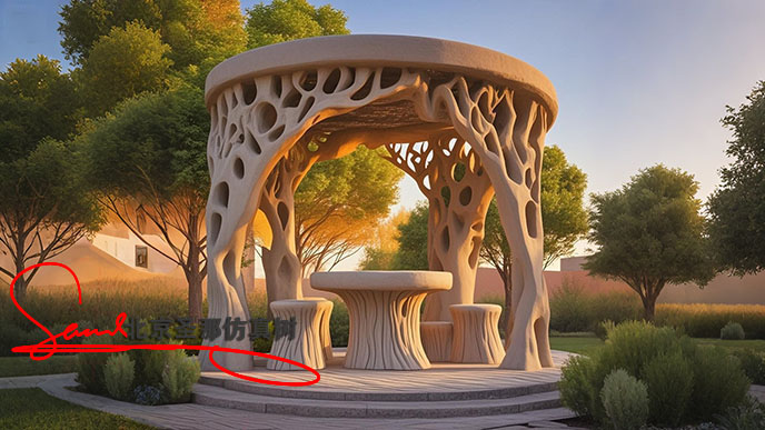 項目描述:水泥仿木涼亭、花架都是單存在的。北京廠家按客戶要求把水泥仿木涼亭、水泥仿木花架組合到一起,終效果得到甲方認可。