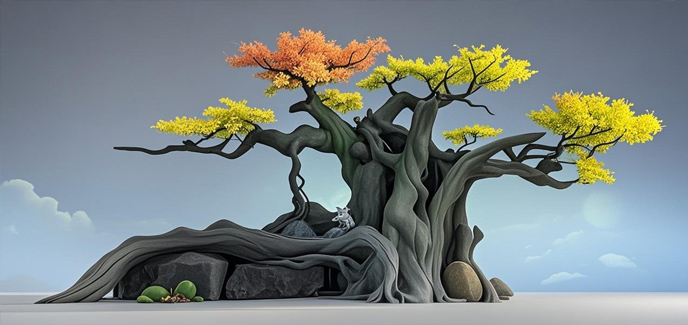 在門店招牌假山表面嵌入定制的金屬或樹脂雕塑(例如抽象的動物造型、幾何線條或品牌 IP 的角色形象)。門店招牌通過使用對比鮮明的材料(如具有鏡面效果的不銹鋼、熒光涂層),營造出視覺焦點。夜晚時,門店招牌使用 LED 燈帶來增強立體效果。