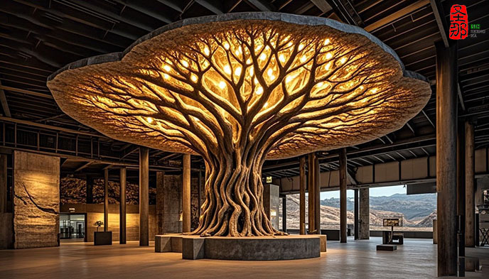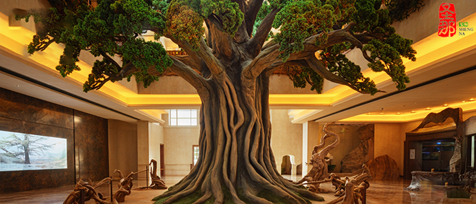 高仿真細(xì)節(jié)拉滿成都松和生態(tài)餐飲體驗(yàn)館室內(nèi)榕樹制作