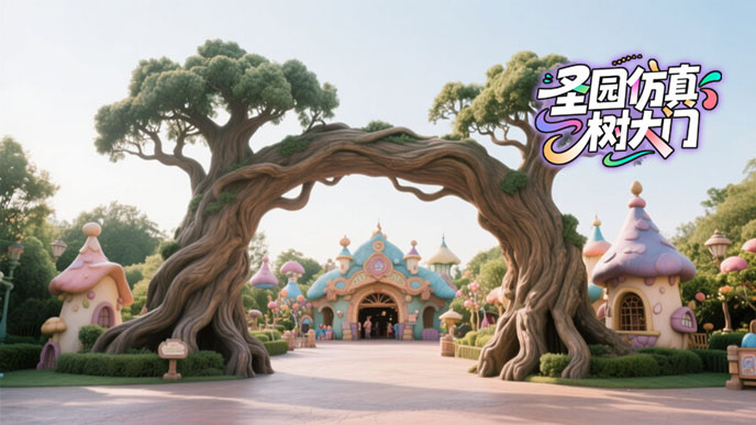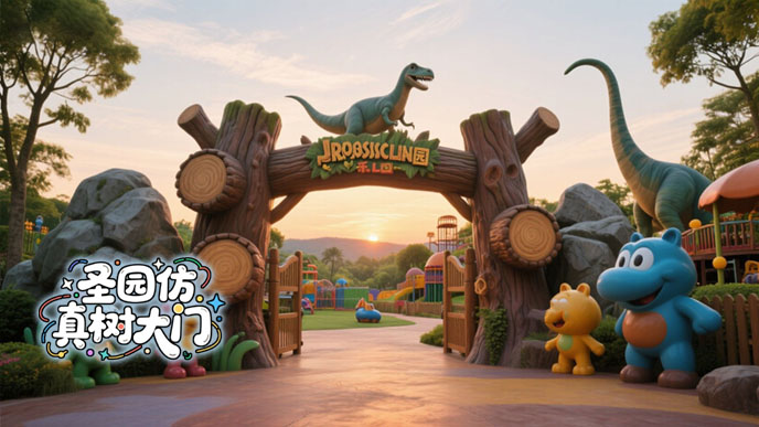 湖北恩施漫無寶f 景區(qū)仿真樹大門施工過程,大門采用巨型橫木結(jié)構(gòu),跨度達(dá)到16米,f 格采用高仿真古樹。在仿真樹大門設(shè)計(jì)之初,北京廠家設(shè)計(jì)了多款傳統(tǒng)方案,但都沒被甲方選中,在開會(huì)討論方案時(shí),有的設(shè)計(jì)說到:距離真樹這樣近,帶樹葉的仿真樹制作得再像也比不過真樹,這句話給了大家設(shè)計(jì)靈感,于是設(shè)計(jì)了沒樹葉的仿真古樹來制作仿真樹大門。