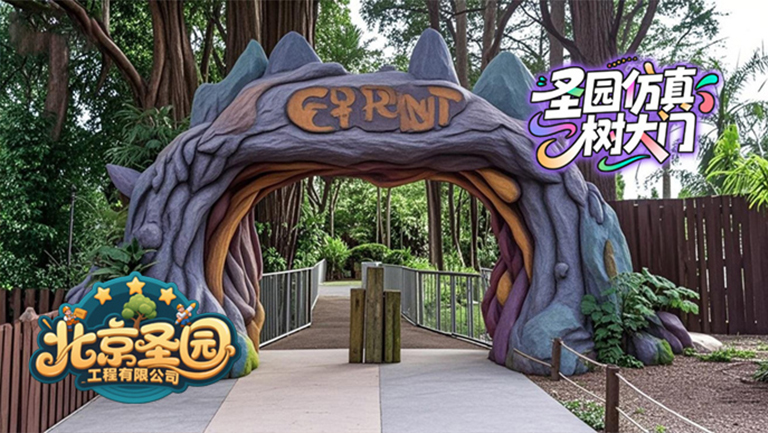 景觀包括:塑石假山、水泥景觀大門(mén)、仿真樹(shù)小品等