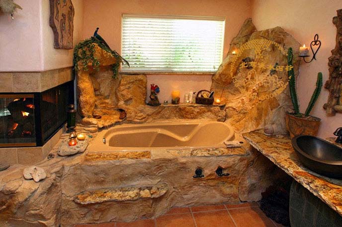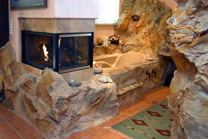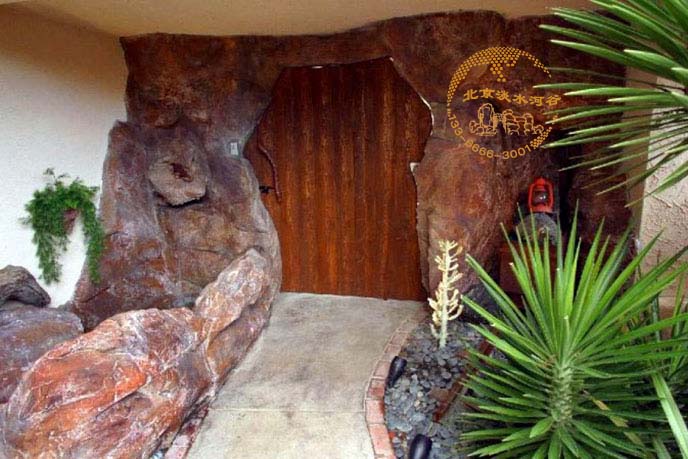 客戶的別墅離山很近,通過塑石假山圖片可以看到室內(nèi)外用塑石假山制作的細(xì)節(jié)很多,包括臥室、浴室、及院墻大門等。