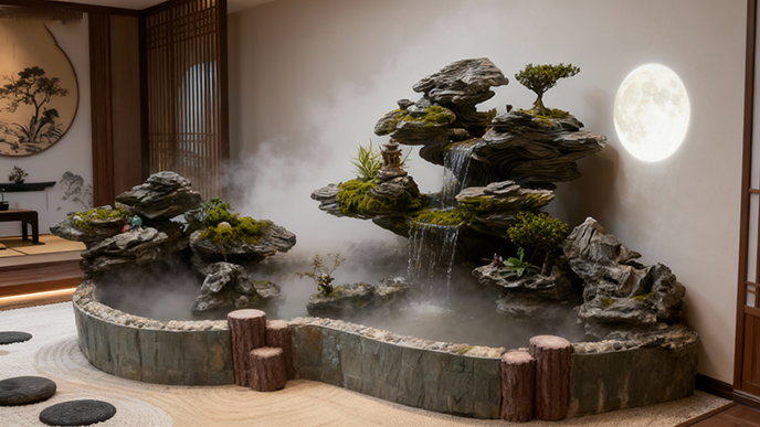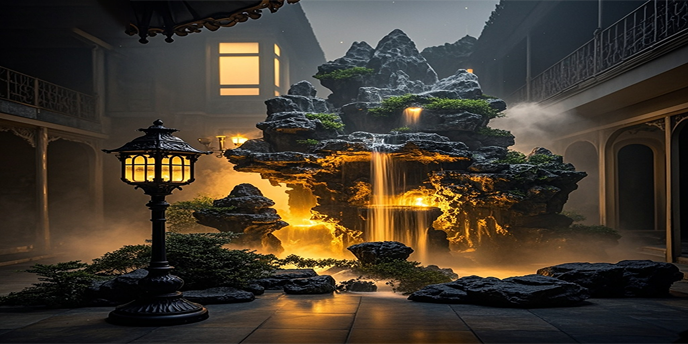 室內(nèi)假山-小型千層石假山,成為了 “點(diǎn)睛之筆”