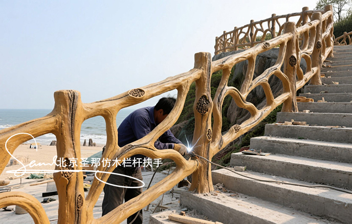 現(xiàn)場塑形不規(guī)則的仿木欄桿制作工藝,效果逼真